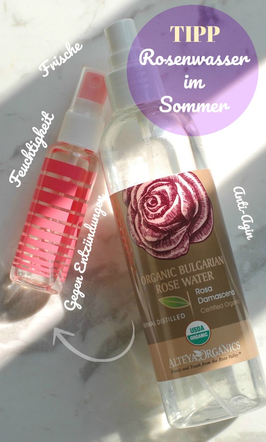 Das ich Rosenwasser für alles mögliche benutze, wisst ihr bestimmt schon. Das Spray von Alteya habe ich auch schon bei den April-Favoriten erwähnt. Heute möchte ich euch daran erinnern, weil wir Sommer haben und Rosenwasser besser passt denn je. Und zwar besser als Thermalwasser und andere gängige Sprays. Weil bio Rosenwassser nicht nur erfrischt und beruhigt. Es wirkt auch feuchtigkeitsspendend und entzündungshemmend. Bei meine empfindliche Mischhaut einfach optimal.